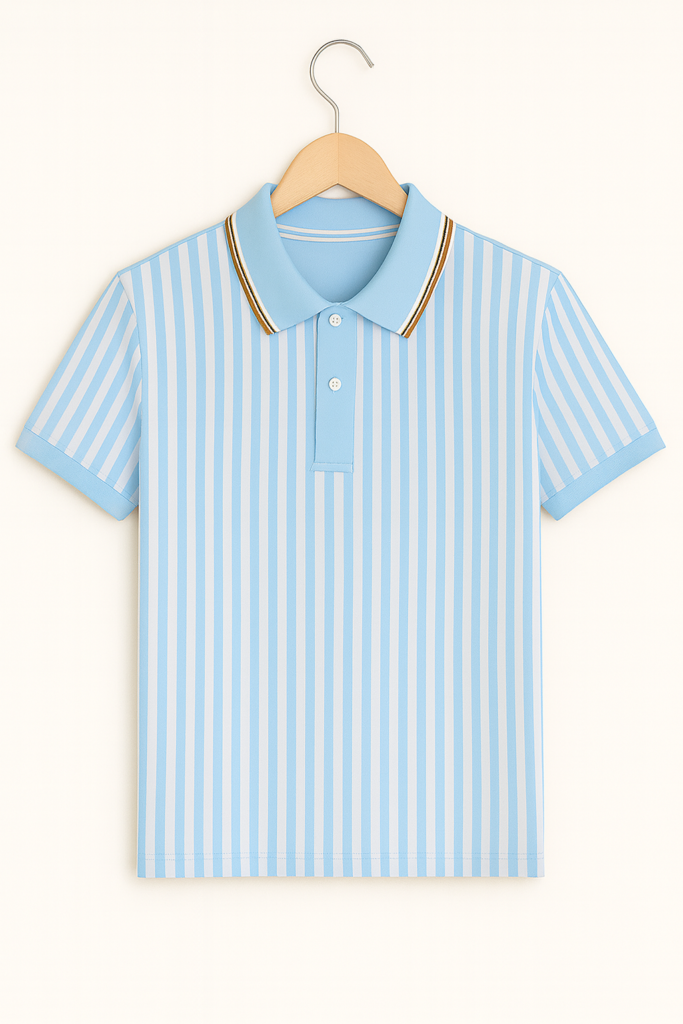 Light blue striped polo T-shirt