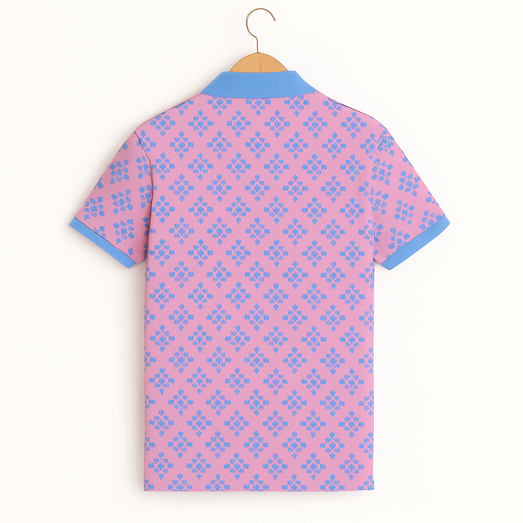 Be the first to review “Pink Floral Polo T-Shirt with Sky Blue Collar”