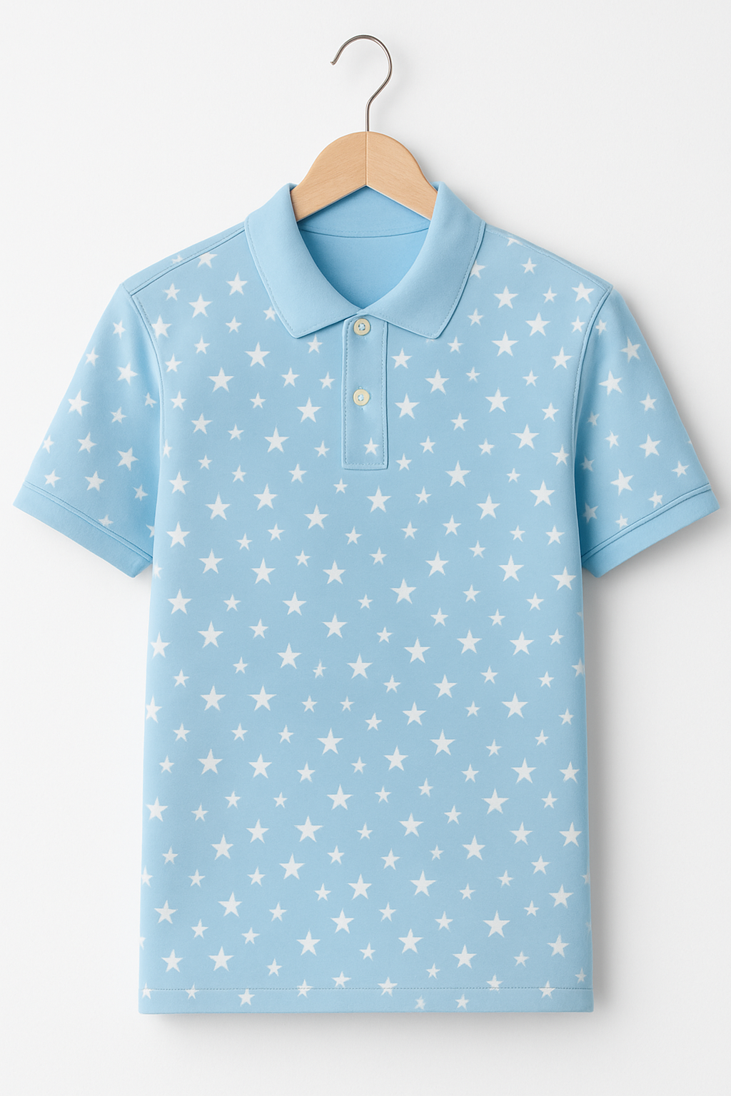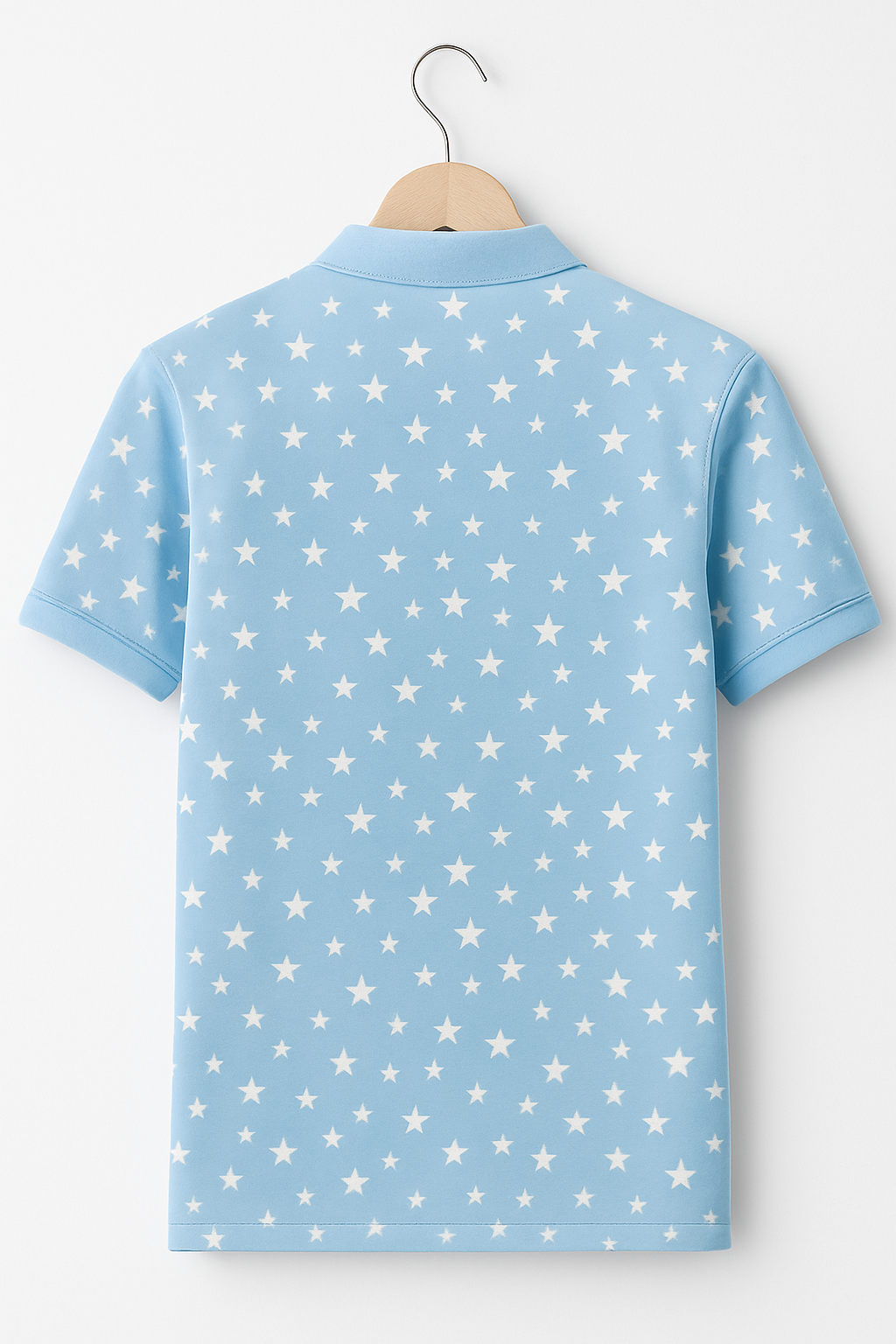 Sky Blue Star Print Polo T-ShirtSky Blue Star Print Polo T-Shirt