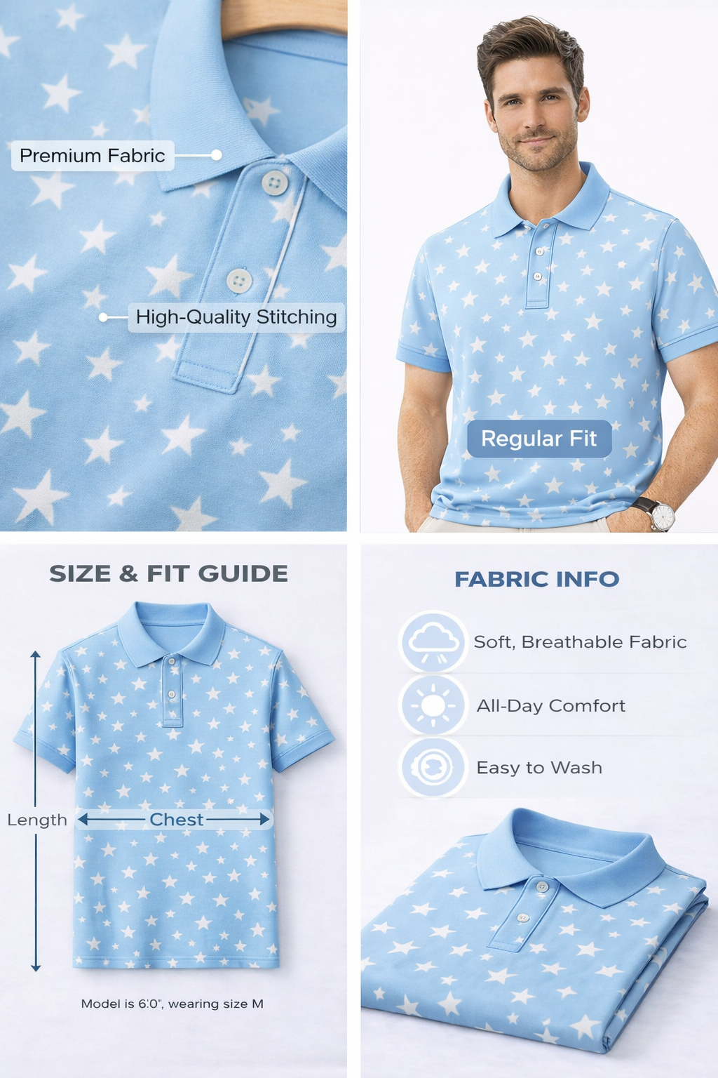 Be the first to review “Sky Blue Star Print Polo T-Shirt”